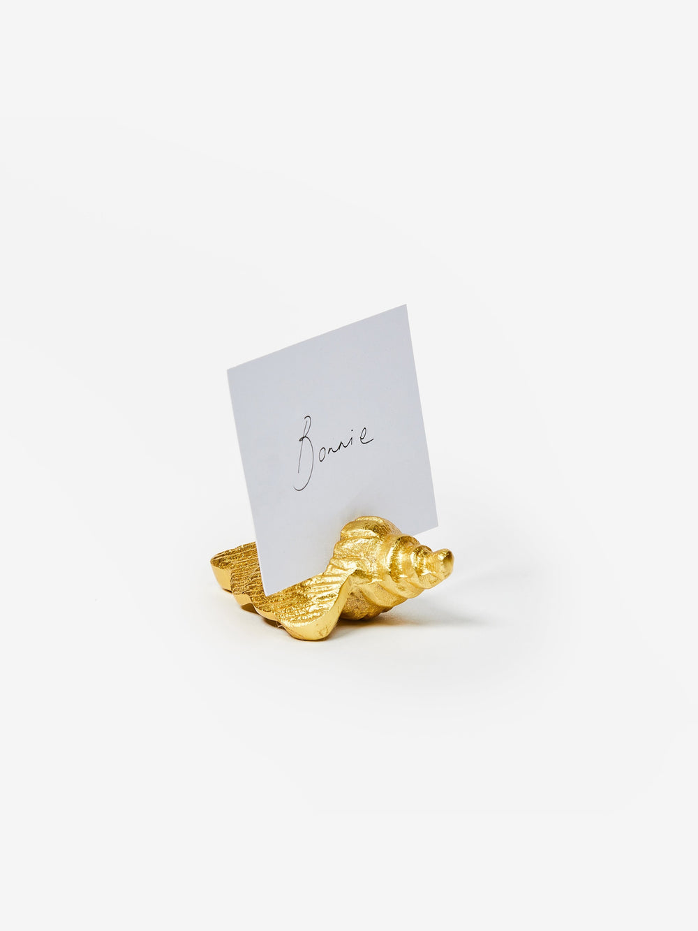 Our Conch Shell place card holder is made from cast iron with a brass finish in the shape of a conch shell, the cutest tabletop inclusion that won't go unnoticed.