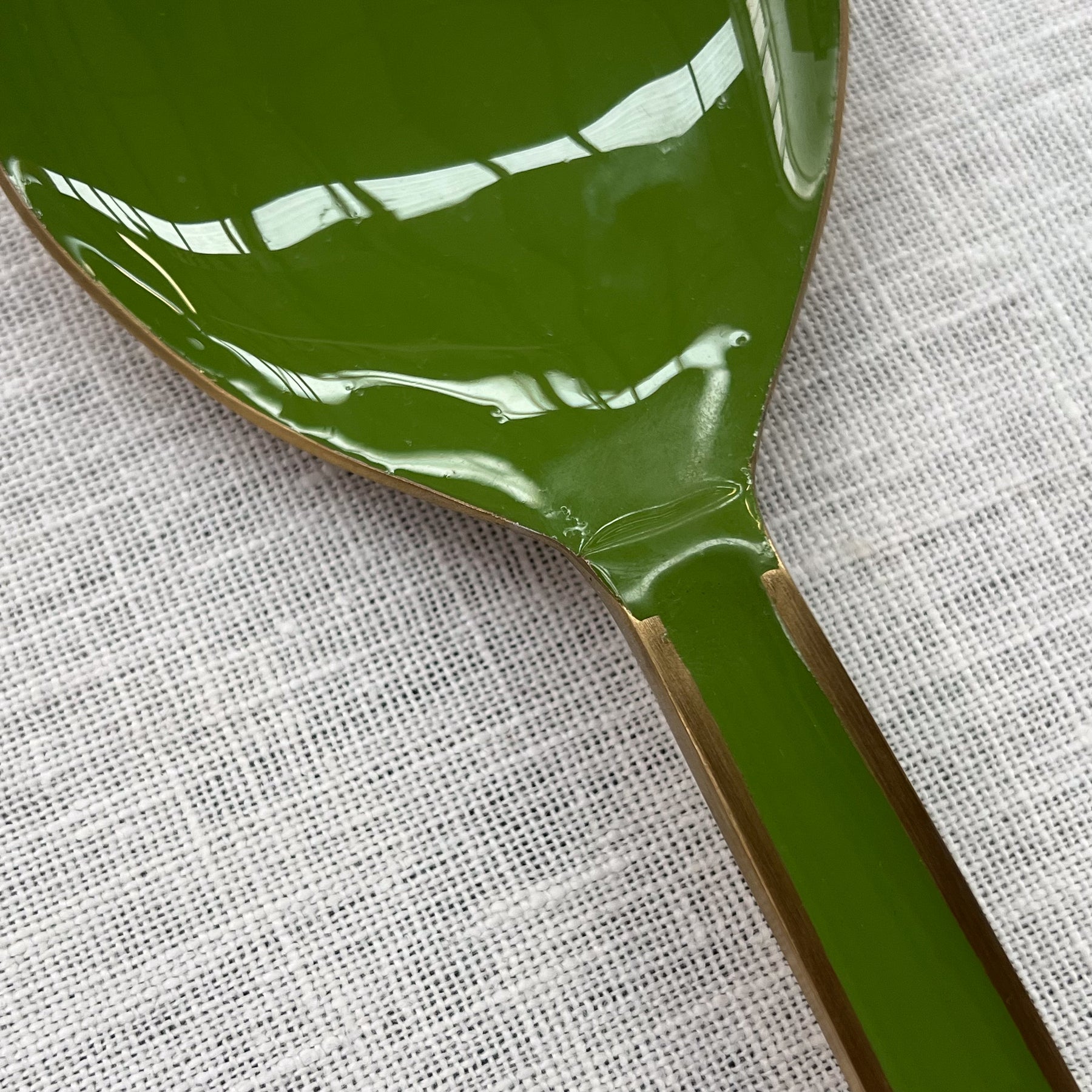 Sage Green Salad Servers | Enamel & Brushed Brass