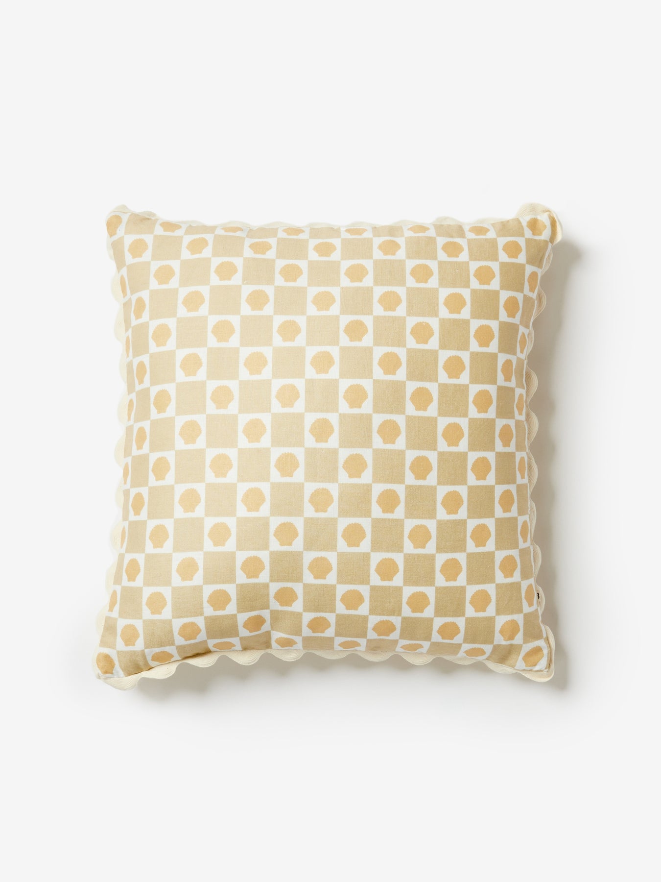 Combining a classic checkerboard pattern with alternating seashell motifs, our shell check cushions bring a playful approach to interior styling. Taking inspiration from vintage tile patterns, a vibrant colour palette gives this design a modern twist.