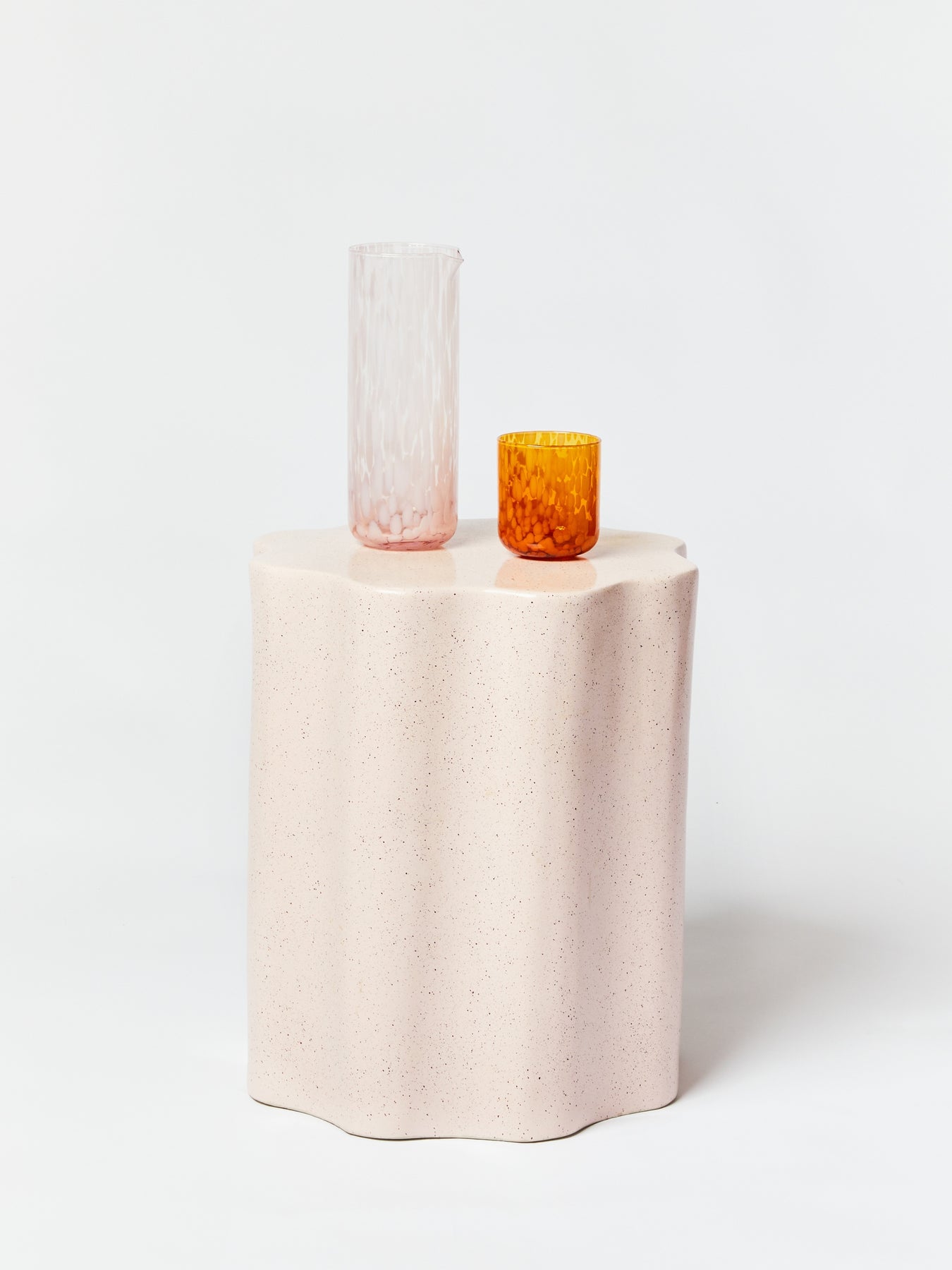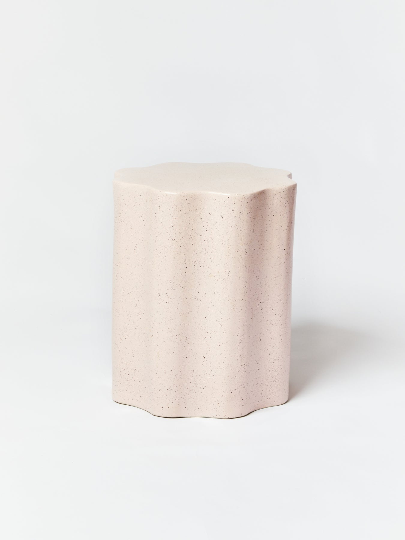 Our Wave Soft Pink Speckle Side Table is made from a moulded stoneware base with a painted glaze. This side table has been sealed.