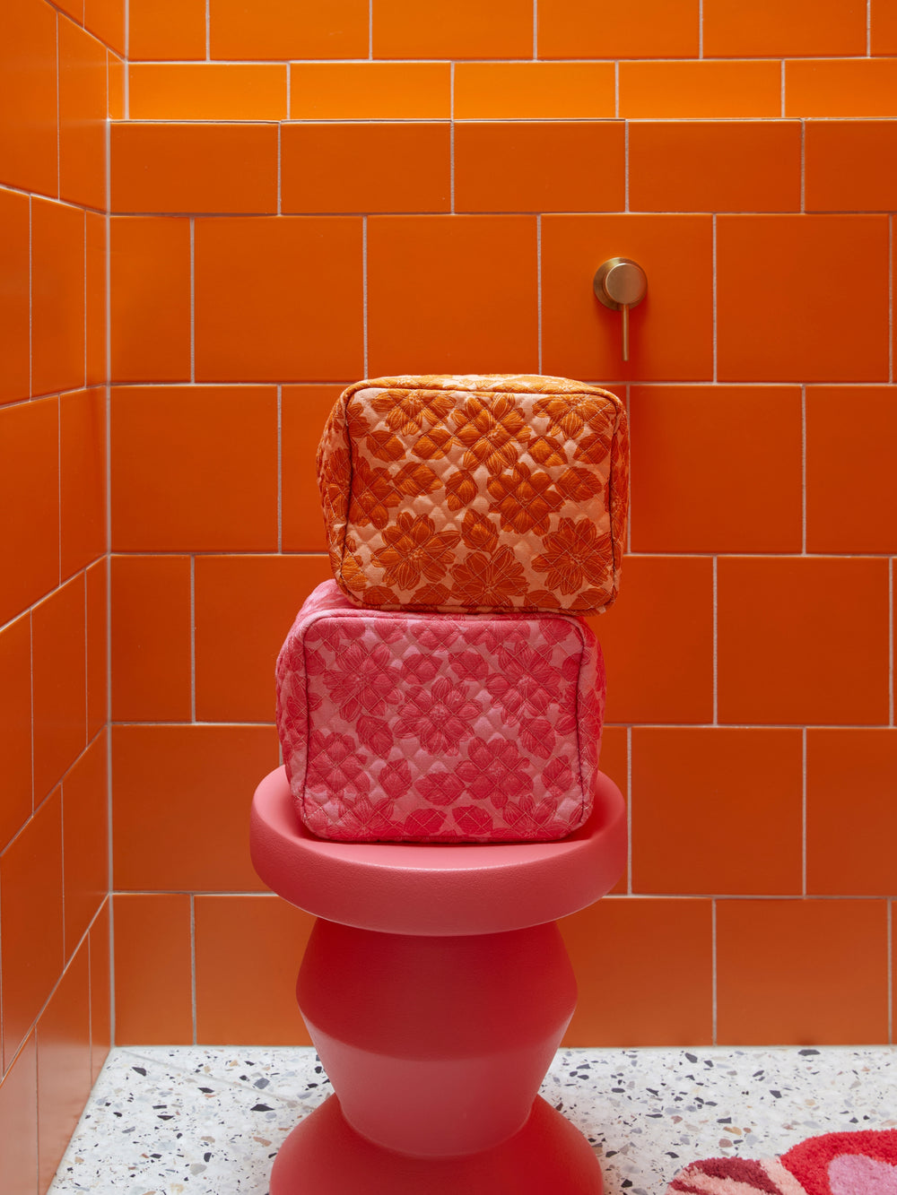 Keep your everyday essentials organised in style with our Margot Tan Toiletry Bag. Featuring a beautiful quilted linen exterior printed with vibrant florals and finished with a contrast striped lining, zip closure and handy pockets inside, this large floral tan toiletry bag will be your go-to storage at home or on your travels. Available in two generous sizes, collect the matching set, or mix and match with other colours.