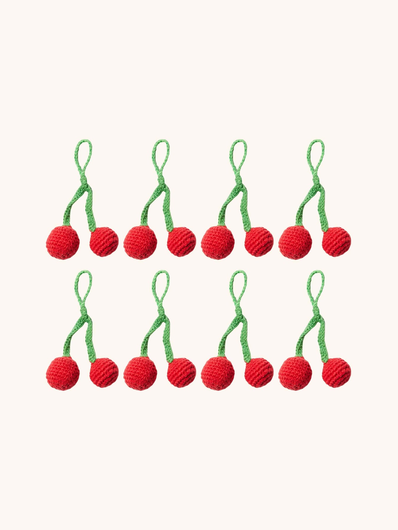Add some festive cheer to your Christmas tree with this delightful hand-crocheted cotton ornament shaped like a pair of cherries. These vibrant red fruits celebrate joy and abundance making them the perfect choice to decorate the season. Hang our Cherries Christmas Decoration with ornaments in red and green for a bold, cheerful display, or mix and match with other fruit decorations to create your festive look.