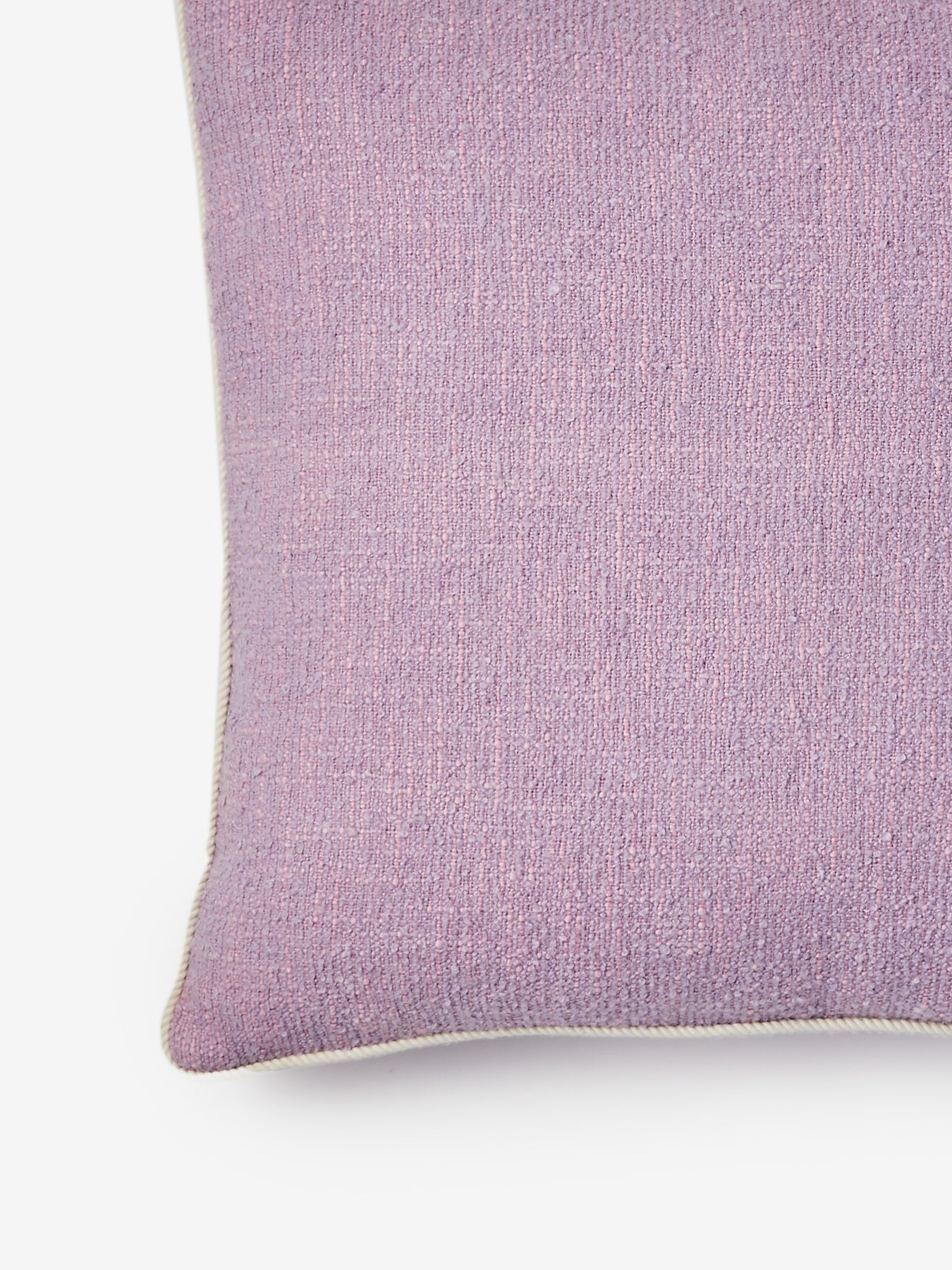 A bright cushion in soft purple, bringing subtle colour and rich knotted cotton texture to your space. Perfect for adding contrast to patterned or neutral arrangements.