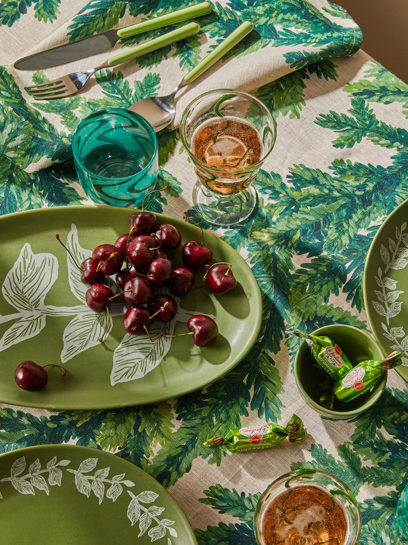 Layered evergreen branches create a rich tapestry of texture in festive green. Perfect for seasonal celebrations or bringing a fresh, natural feel to your table year-round.