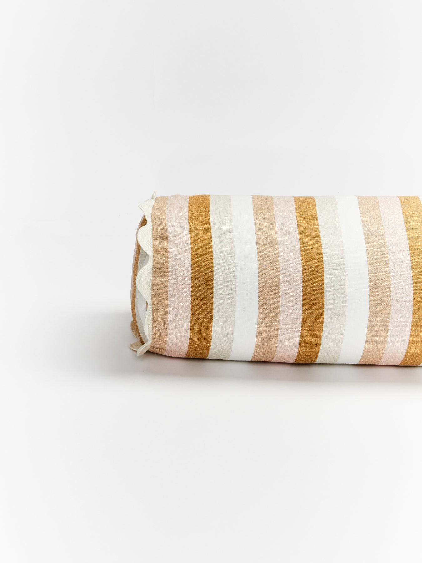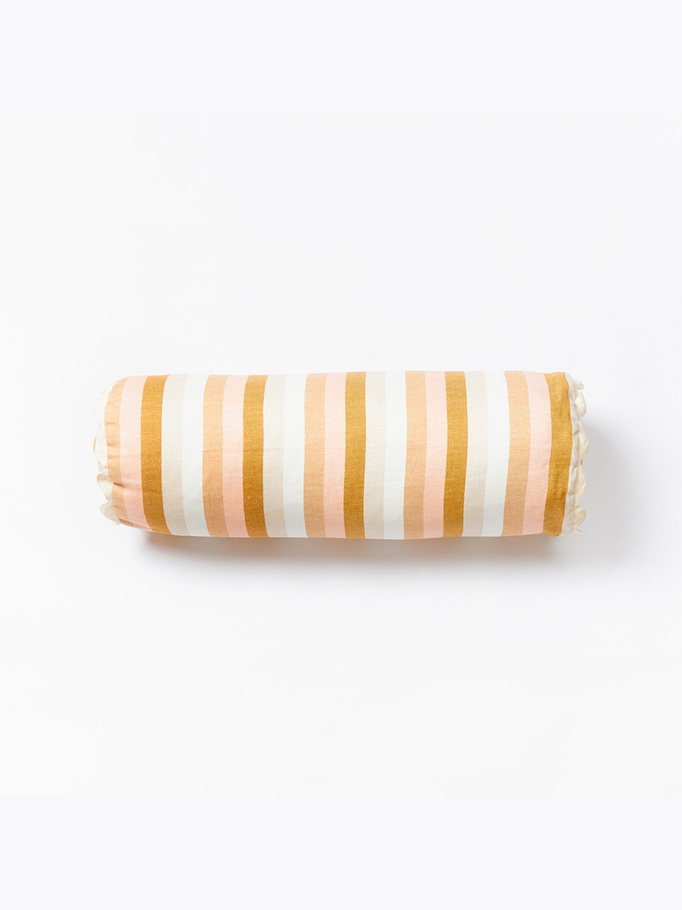 Our Florence Stripe Wheat 60 x 20cm bolster cushion features original artwork by Bonnie printed on soft woven cotton.