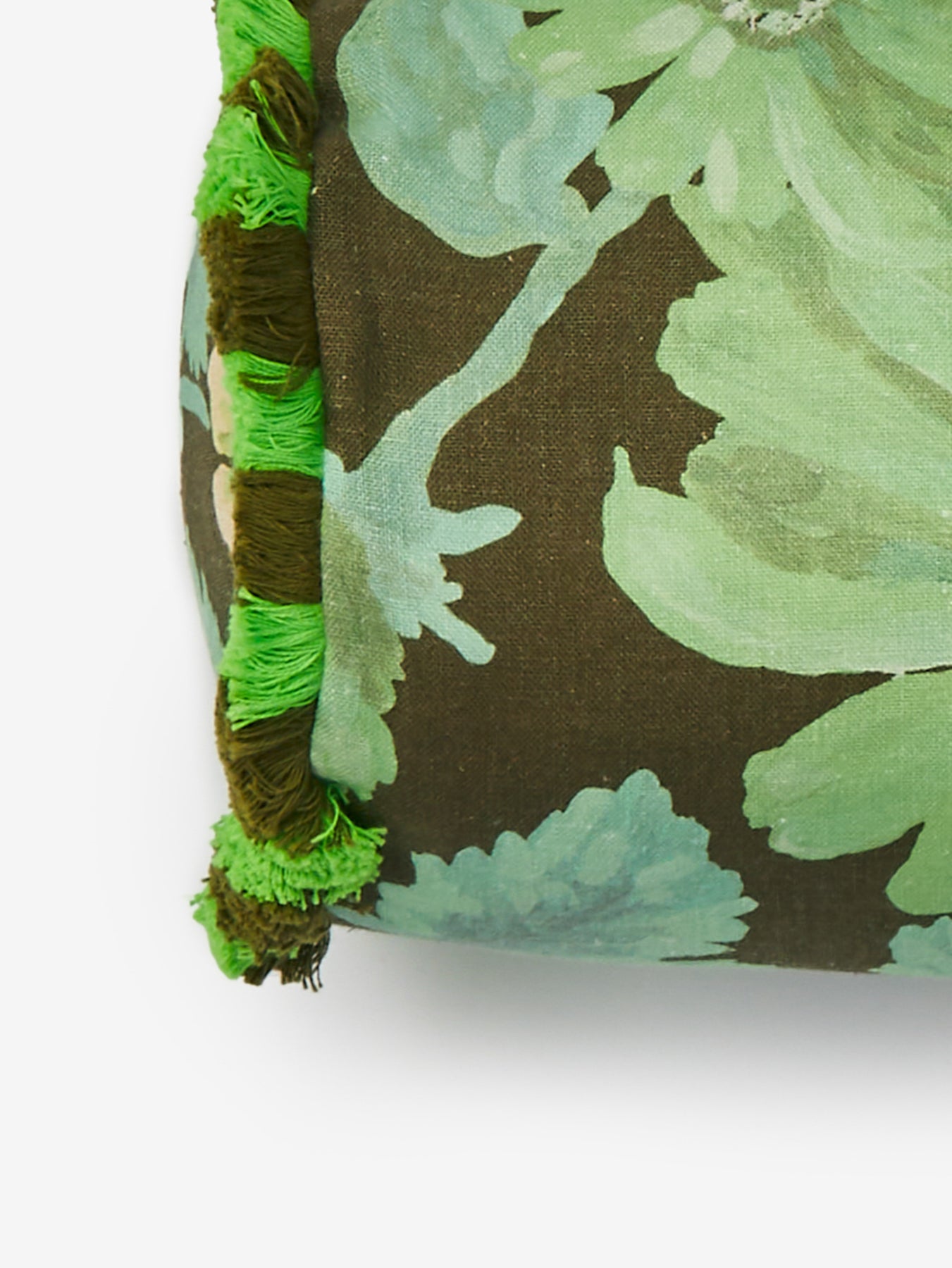 Khaki Green Floral Bolster Cushion | French Linen | Bonnie and Neil