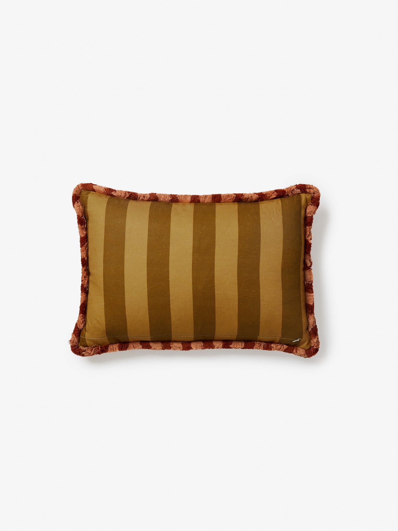 • Finished with a tan and chocolate brown stripe cotton fringe trim