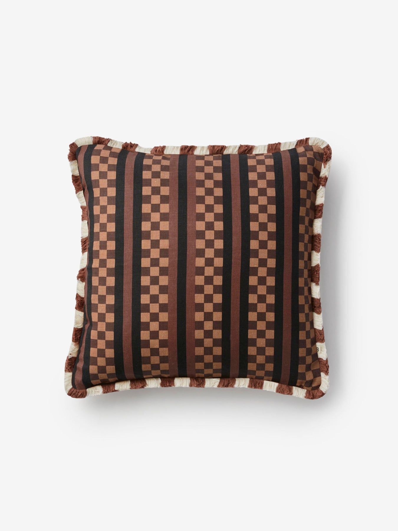 Choc Brown Check Cushion | French Linen | Bonnie and Neil