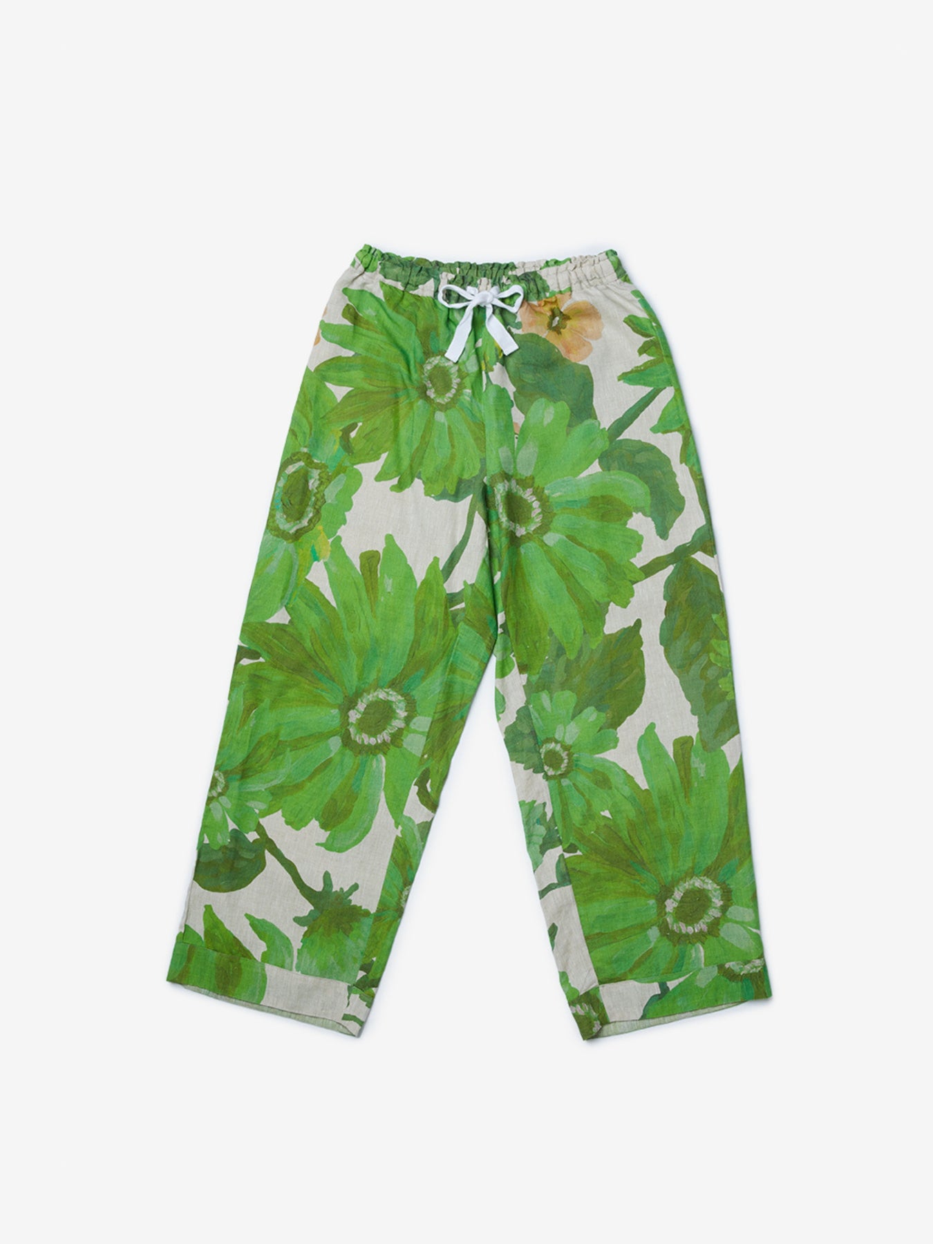 Rich greens and golden marigold blooms make for a print worth wearing to bed. A relaxed long sleeve top and wide-leg pants cut in stonewashed 100% French flax linen that feels cool and soft against the skin - they are the kind of pyjamas you find yourself reaching for every night.
