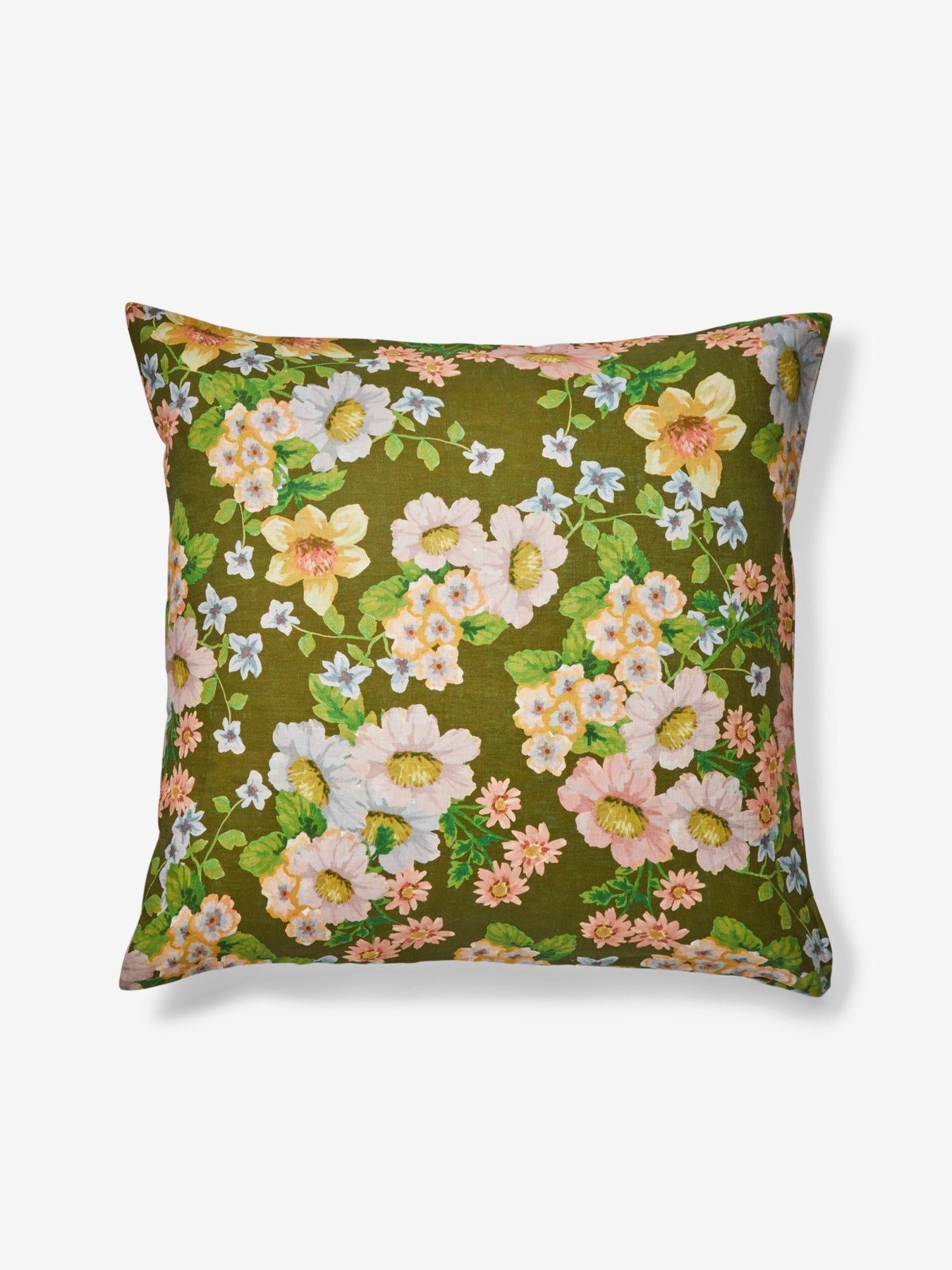 A vintage-style floral on a grounding green base offers both softness and structure - these linen European pillowcases are a versatile layer for any bedding arrangement.