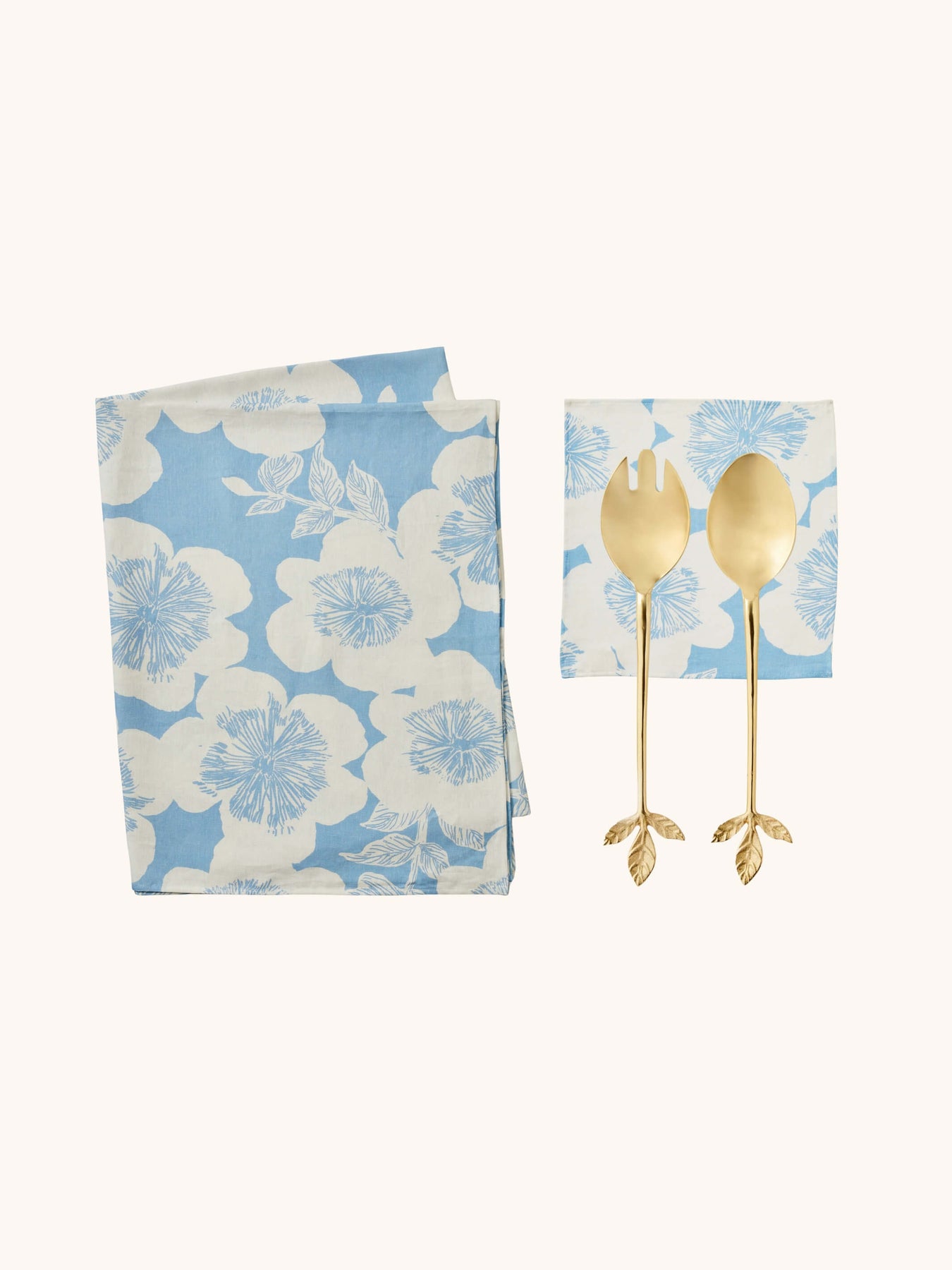 Elevate every gathering with The Jardin Dove Hosting Gift Set - a refined trio featuring our Jardin Dove Tablecloth, matching Napkins and leaves salad servers, designed to bring effortless elegance to your table.