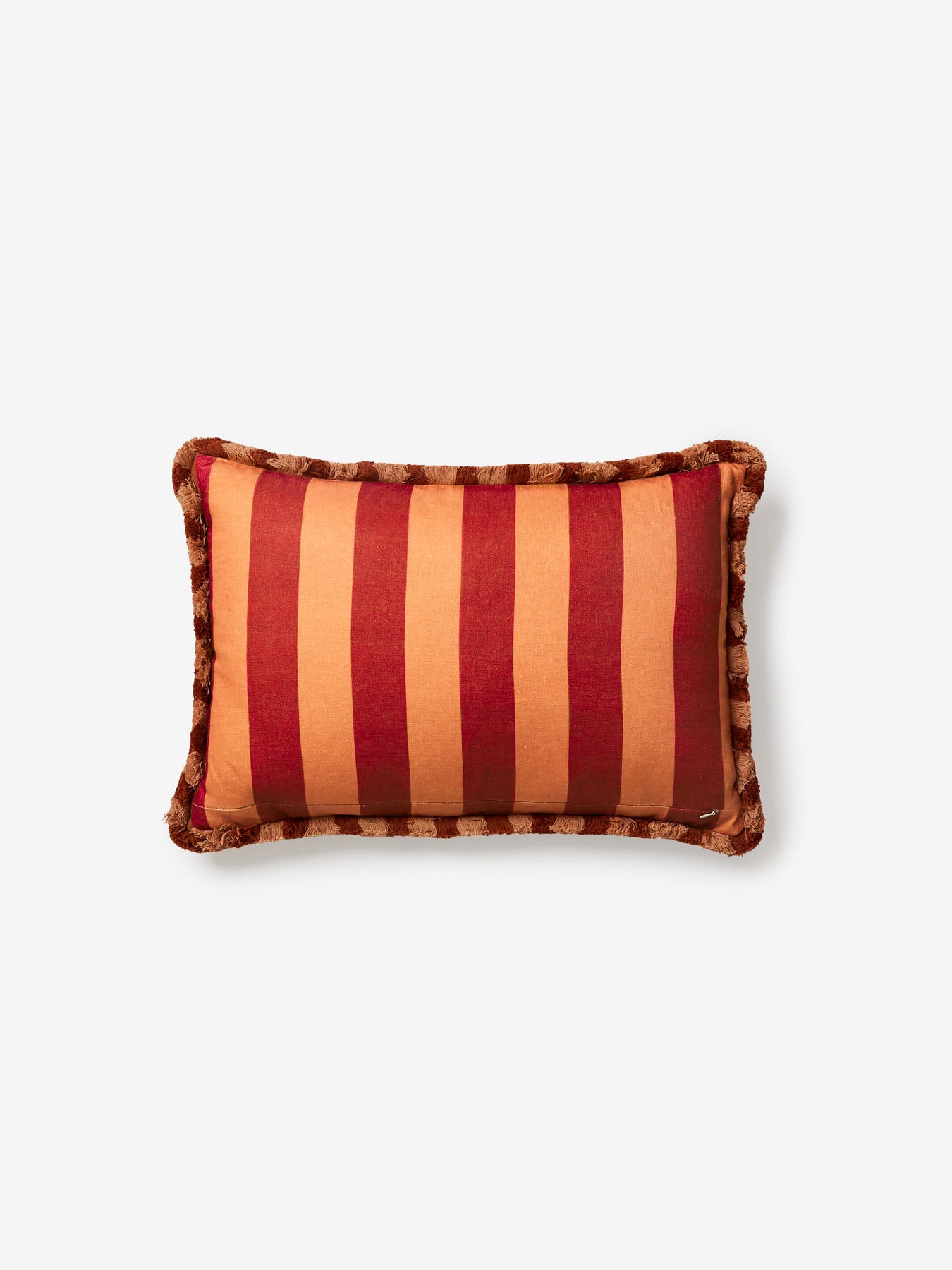 • Finished with a tan and chocolate brown stripe cotton fringe trim