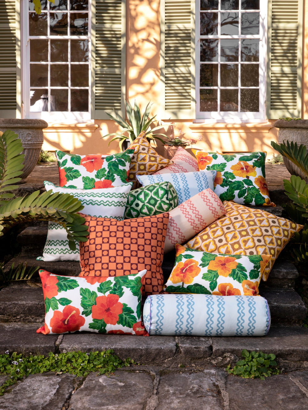 Bring comfort to outdoor living with our outdoor cushions, bolsters and soft seat pads. Shop vibrant colours and colourful prints that add colour to your outdoor area. Printed on weather-repellent linen and filled with mould-resistant, outdoor quality foam, these cushions are the ultimate addition.